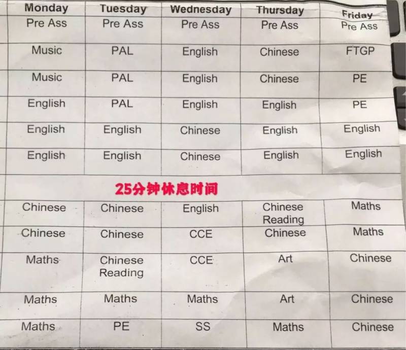 大部分的小學從早上7點-7點30開始上課,一直持續到中午。注意:兩節課之間沒有課間休息,但有固定的Recess時間可以吃東西或玩,約25分鍾左右。 所以一定要保證孩子有充足的睡眠時間,不論是步行去學校或趕校車,早起早睡是個好習慣。