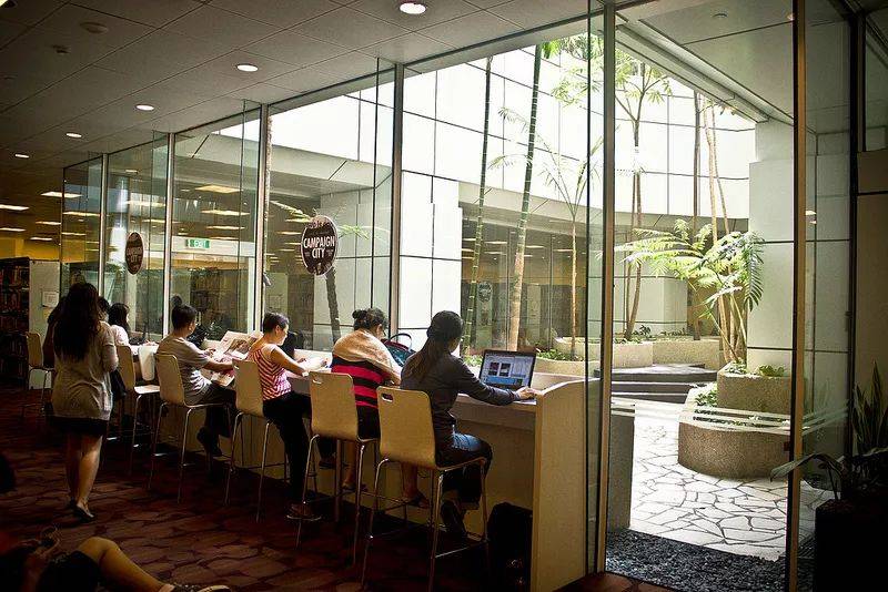 新加坡的面積雖然並不大,但是爲了鼓勵全民閱讀,政府在全島建立了27座國家圖書館。無論同學們住在哪一區域,在最近的地鐵站或社區中心附近,一定能找到一座國家圖書館;在緊靠地鐵站的商場裏,往往也分布有小型圖書館。