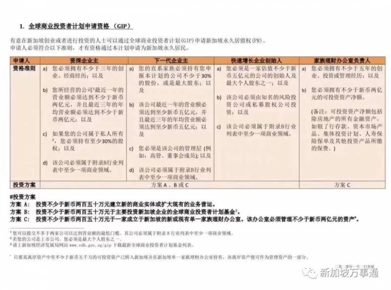 如果你想通過新加坡全球商業投資者計劃申請資格通過全球商業投資者計劃申請永久居民,必須擁有豐富的商業驚豔和成功的創業背景 。