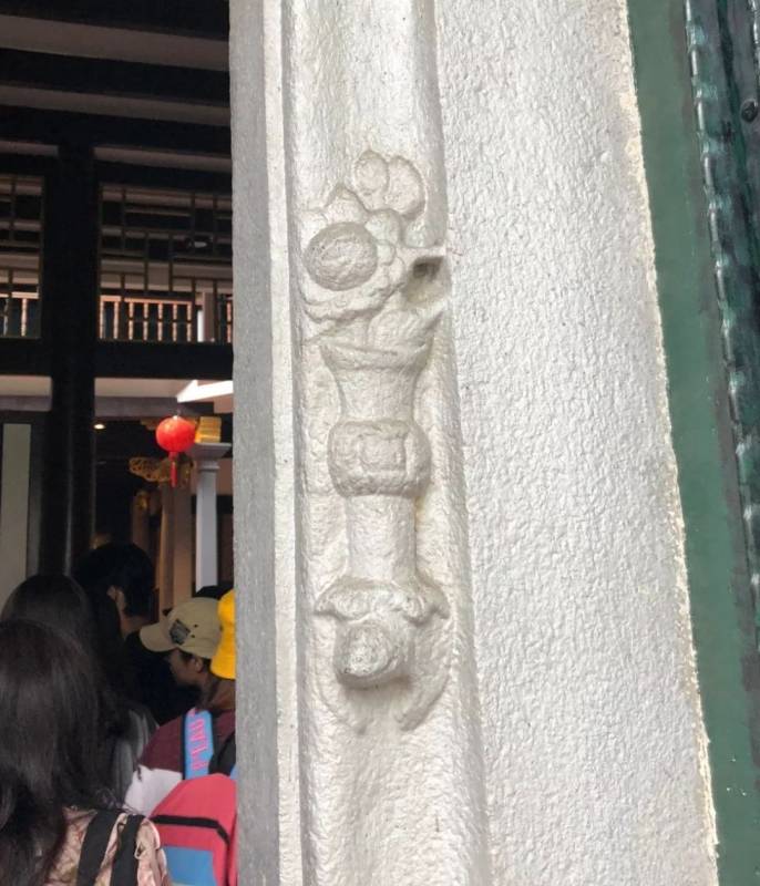 門框兩側雕有花瓶和向日葵,或許也指向平安、富貴、忠誠、多子的多重含義。 整棟建築最華麗的裝飾在最內間的二樓。越往裏越是別有洞天,也展現出客家人與潮州人相反的低調性格。