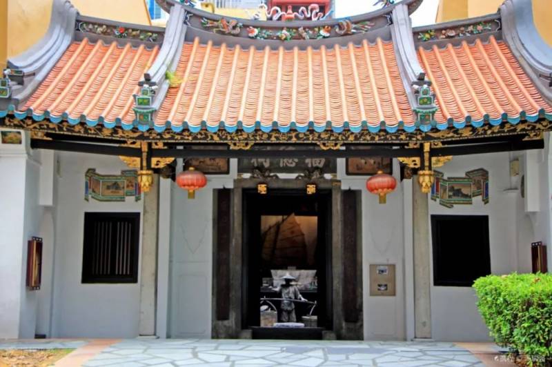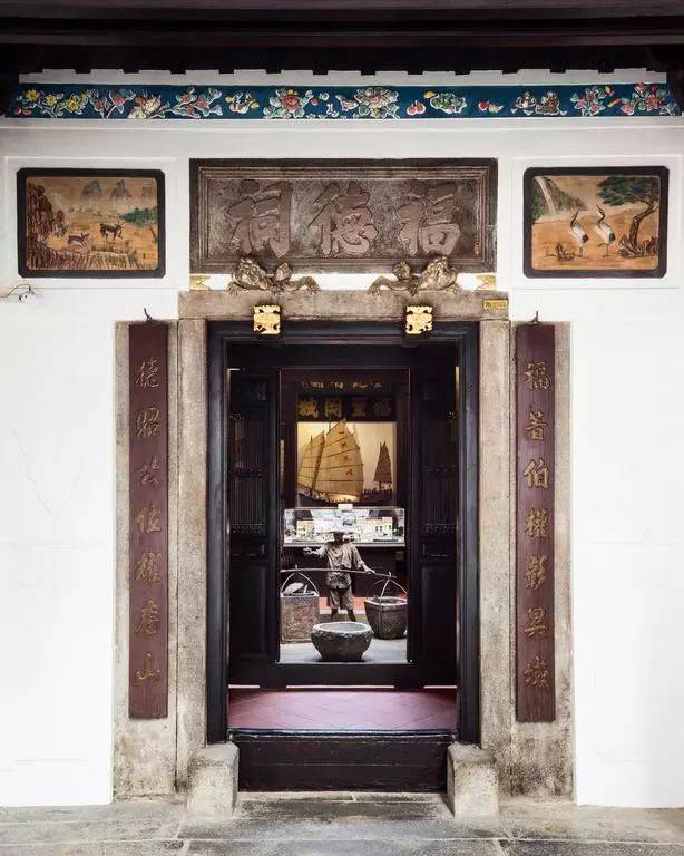 而廳內靠牆正中的帆船模型,或許是爲了紀念早年乘船漂洋過海來到這座小島的先祖吧。 從正殿穿過之後,裏面已成爲新加坡華繡酒店,酒店大堂也有很多古色古香的擺設與壁畫,福德祠則成爲一個天然前廳。下次若再去新加坡旅遊,倒是很想去他們家住住看。
