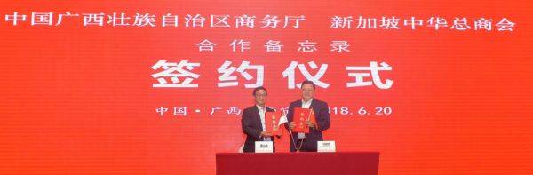 2018年6月,新加坡中華總商會會長黃山忠親自率領30人商業代表團出訪廣西南甯,拜會當地政府,了解廣西和南甯最新發展動向。在南向通道建設的大趨勢下,雙方達成協議將共謀合作,在物流、金融、貿易等方面深化共贏。