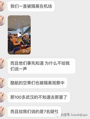 很多乘客質問爲何沒有事先得到和100多名武漢乘客同行的消息,並反映落地後連同行的酷航空姐空乘也被隔離觀察了。