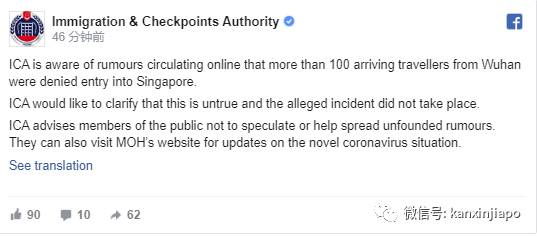 新加坡移民與關卡局今早(1月25日)發文證實,“新加坡遣返110多名武漢旅客”一事並非真實,並無此事。
