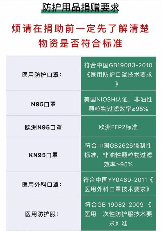 防護用品捐贈要求