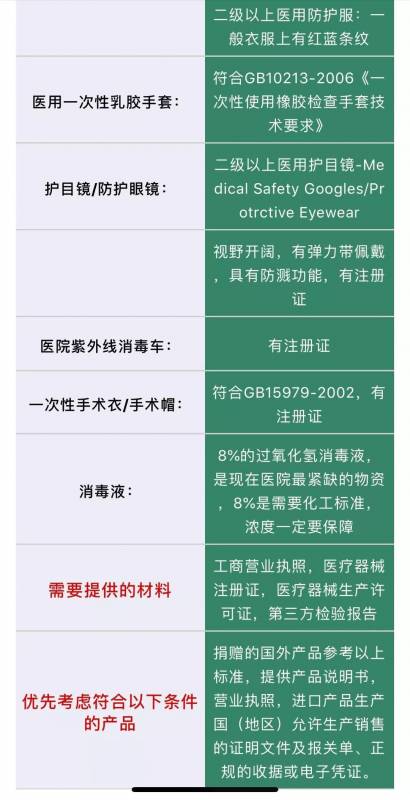 境外、境內物資捐贈方法 所謂一方有難,八方支援。爲支持武漢地區抗擊疫情,打贏疫情防控阻擊戰,中國僑聯倡議海內外僑胞捐贈款物,特別是醫用耗材、防護用品,包括口罩(N95口罩、醫用外科口罩、一次性醫用口罩)、防護帽、防護服、防護眼鏡、一次性乳膠手套等。捐贈具體工作由湖北省僑聯、中國華僑公益基金會協同武漢紅十字會等相關單位落實。