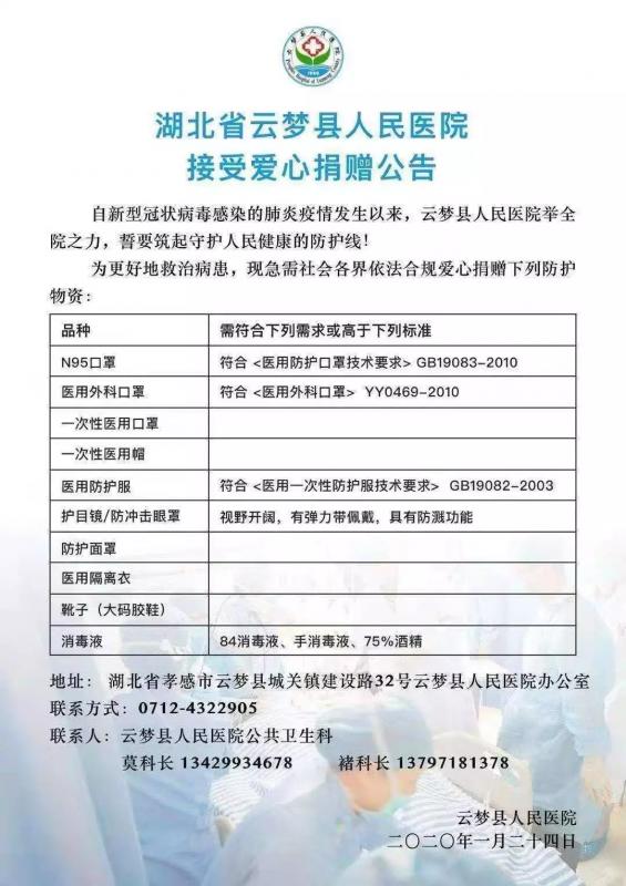 萬事通牽手 搭建愛心橋梁 武漢方面,我們已直接聯系到當地紅十字會和各大醫院門診,向新加坡各界愛心人士和海外僑胞緊急募集緊缺醫療物資。 清單如下,爲減輕分揀工作的難度,請務必記牢一下物資的醫用標准 : 1. N95口罩,外科口罩,一次性醫用口罩(應符合國家《醫用防護口罩技術要求》GB19083-2010); 2. 醫用帽,防護服,手術衣(醫用防護服需符合《醫用一次性防護服技術要求》GB19082-2009); 3. 護目鏡,防沖擊眼罩,防護面罩(護目鏡應具有防濺功能); 4. 醫用一次性乳膠手套,長筒膠靴/防水,防汙染鞋套(手套需符合一次性使用橡膠檢查手套技術要求GB10212-2006); 5. TR600動力送風過濾式呼吸器。