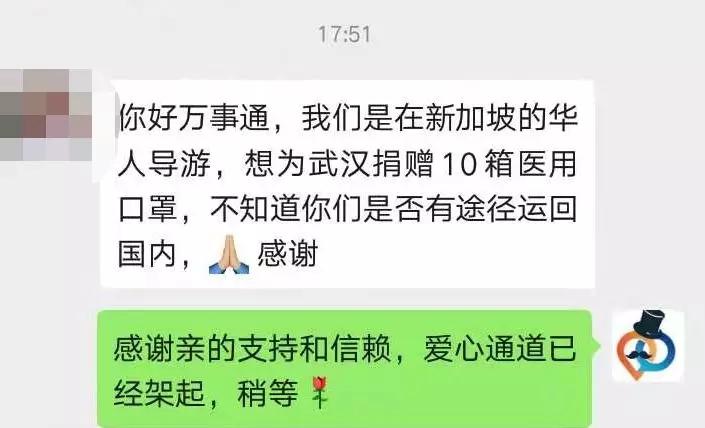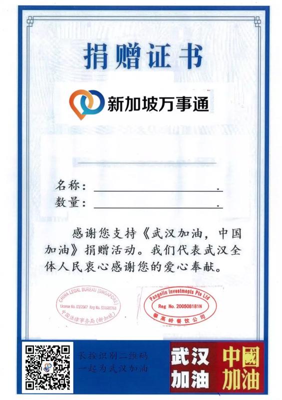 通心粉添加小助手詢問捐獻途徑 作爲新加坡最具影響力的中文媒體平台,新加坡萬事通全力發起爲武漢獻愛心的行動,本地餐飲公司鼎力支持,承擔運輸産生所有的費用。現展開全島籌備物資,全力支援武漢的義務愛心行動!
