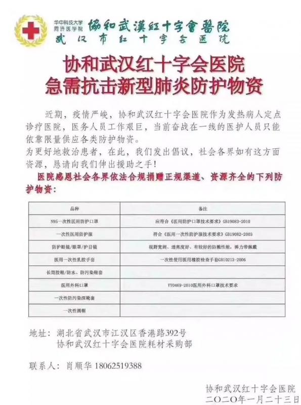 另外,武漢封城以來,大部分商店和已經停止營業,物流速度嚴重不暢。爲了安撫市民情緒,給患者和患者家屬提供必要的防護措施,醫院每天需要給他們提供口罩和帽子。 目前,醫院雖然有籌備物資已送達,依舊是捉襟見肘,遠遠無法滿足日常防護需求。