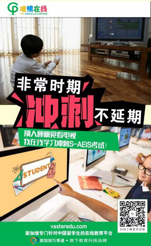 受疫情影響,一些學生在國內無法來新加坡,或是剛剛返回新加坡,無法正常回學校上課,在最後的沖刺階段,萬事通旗下“培根在線”正式上線了,一個專門針對中國留學生的在線教育平台,重磅推出S-AEIS在線沖刺班!
