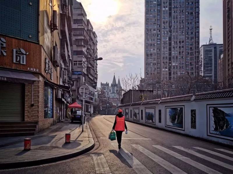 而隨著史上最“硬核”防控措施的徹底執行,與武漢以及全國各大城市一樣,宜昌也漸漸地變成了一座“空城”,路上幾乎看不見行人,而各個小區的門口,門衛和志願者們也把每個小區都守成了一座座“堡壘”,空蕩蕩的大街上,能看到的只有警察、志願者、環衛工人和快遞小哥的身影,偶爾,也能看見噴灑消毒液的人員和車輛……