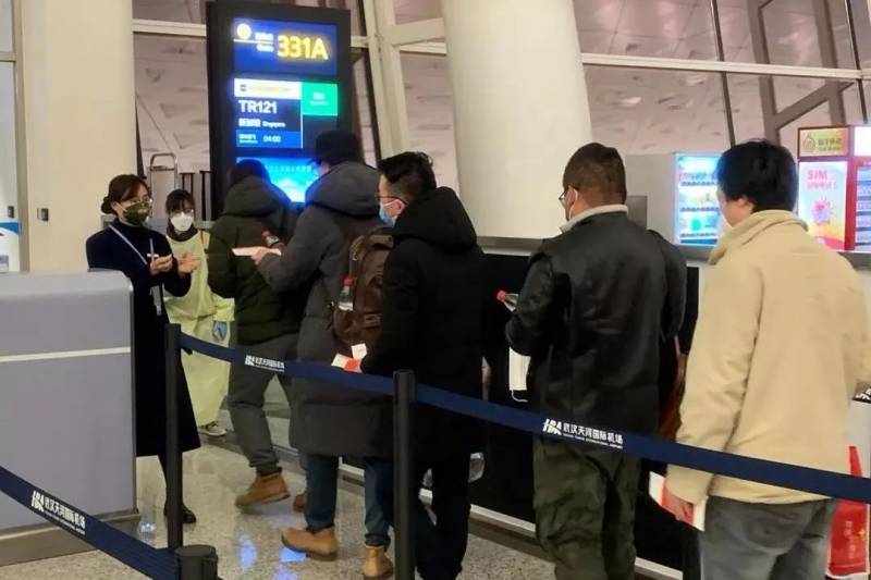 (新加坡公民從武漢天河機場登機返回新加坡)