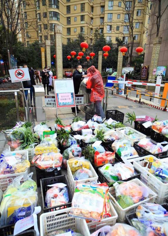隨著宜昌的封城,各個小區也開始嚴格封鎖,所有的出入口全部封閉,所有居民嚴禁外出,生活用品全部采用網購。每個小區都有一些指定供應商,居民可以通過微信訂菜,然後隔天由專人派送至小區,由居民到小區大門口取貨,全程無接觸。