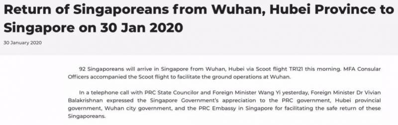 也就是在新加坡公司開始建立與Michael的”everyday checking”的當天,2020-1-30,新加坡政府從武漢撤回了第一批92名公民。