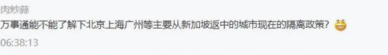 • 坡島網友求助:疫情之下,從新加坡回中國該如何隔離?