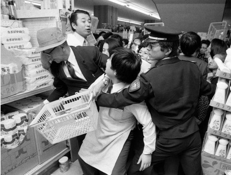 而搶廁紙這件事也是有曆史淵源的,在1973年的石油危急造成了糧食生産以及其他日常用品的短缺,當時日本大阪一家超市的宣傳:廁紙快用完了!大阪的人們瘋狂地跑去搶購,日本其他地方也爆發了需多類似的情況,不少人因此而受傷。