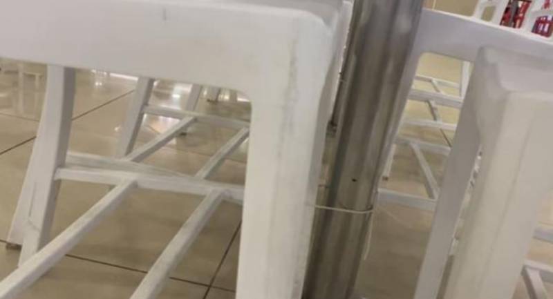 武吉巴督威城(West Mall)的食閣店家用繩子把不准坐的椅子綁在桌腳,讓食客無法把椅子拉出來坐,強制食客遵守安全距離。