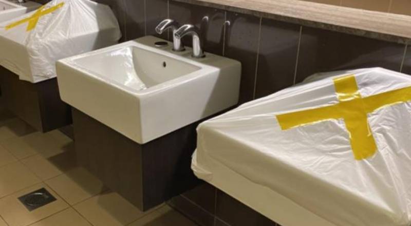 一些商場如裕廊東JEM購物商場的洗手間,封起部分洗手盤貼上不准使用的標簽,以確保公衆洗手時隔著一個洗手盤洗手,彼此保持一米的距離。