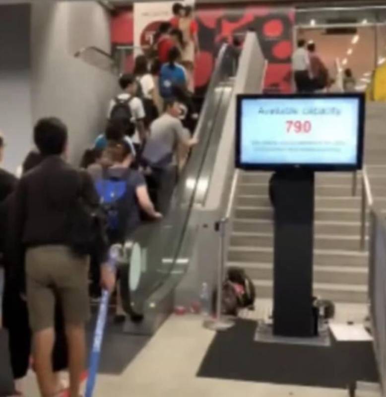 一位網友分享他剛剛拍到的視頻,在視頻中,大家可以很明顯的看到在位于實龍崗的NEX購物商場中一座電動扶梯出現人龍,大家都等著搭上電動扶梯。