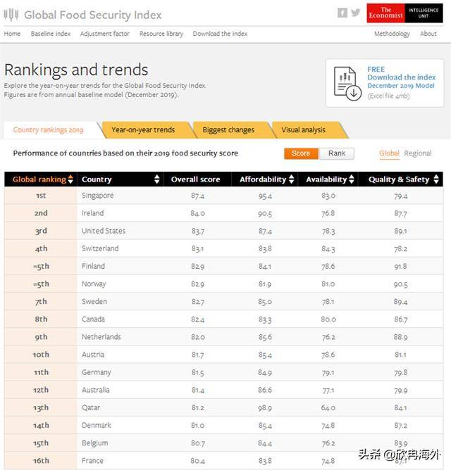 2019年《全球食品安全排行榜》