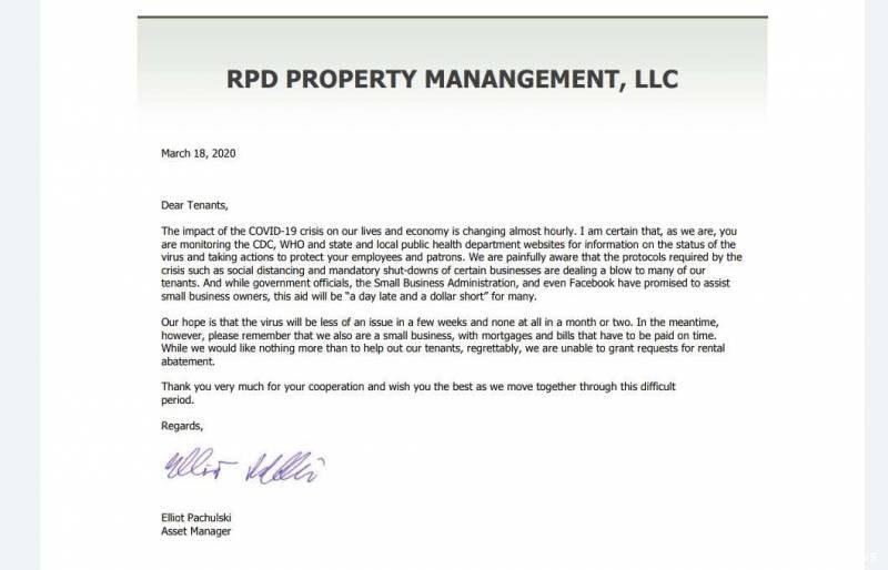 3月18日,盧先生的房東給他發來了一封郵件,友好地表達了自己還要繳納貸款水電等困難,所以沒辦法爲盧先生的閉店減免房租。