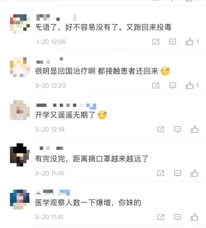 寫在篇尾:網上盛行著一段話,新冠疫情,中國打上半場,國外打下半場,海外華人打全場。每天關于境外輸入病例的新聞下,都不乏”就不該讓他們回來。”“建設祖國不在,萬裏投毒你最快。”這樣的評論。