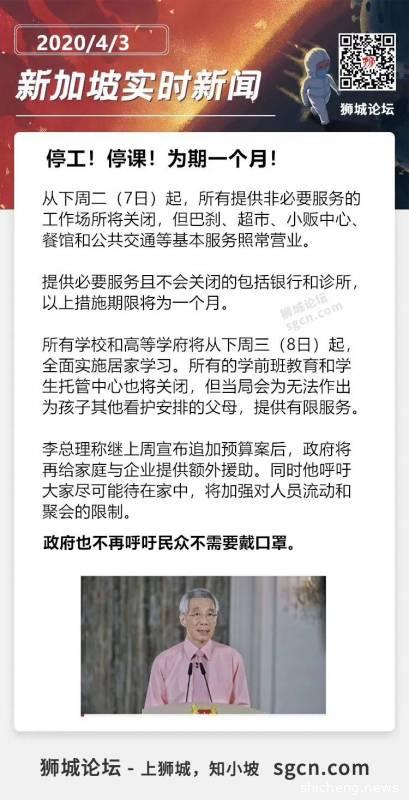 新加坡停工、停課,一個月,政府說啦,可以戴口罩啦~(而爲了減少學生焦慮情緒,全國學校年中考試將會取消)