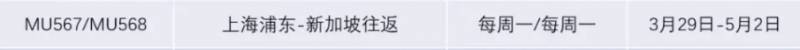 東方航空自3月29日~5月2日 保留一個航班: 上海浦東往返新加坡 (每周一)