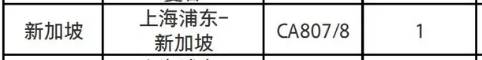 國航自3月29日~4月30日 保留一個航班: 上海浦東往返新加坡 (每周一)