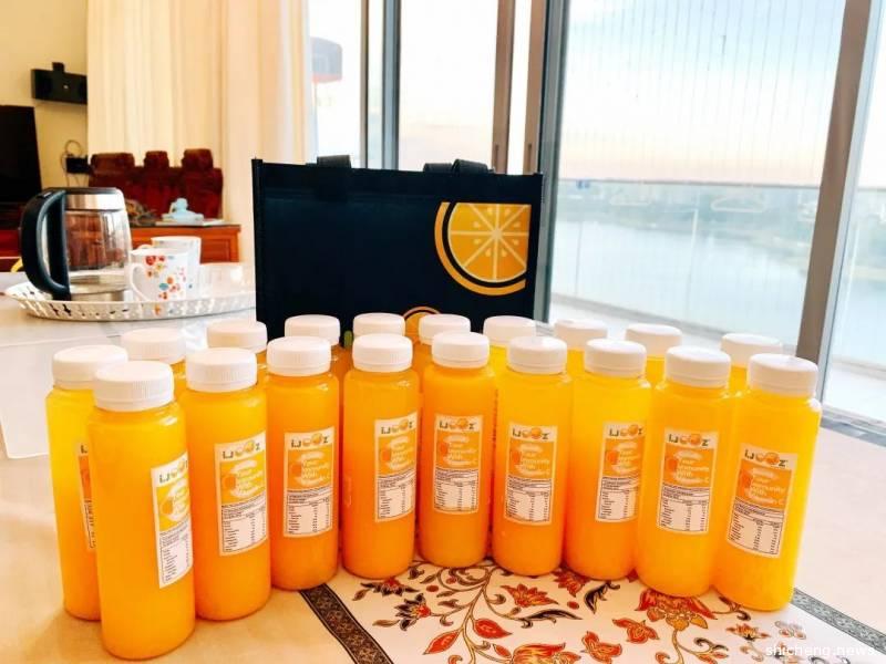 鮮榨橙汁含果粒,喝前請搖一搖~