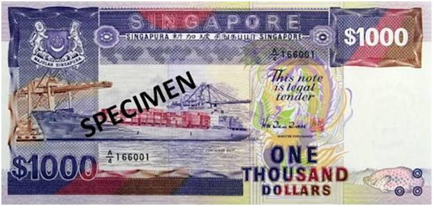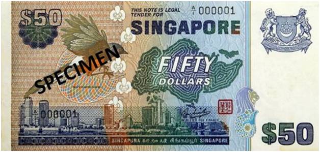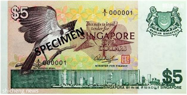 當時,新加坡政府首先發行了6種不同的面值的紙鈔,分別爲1元、5元、10元、50元、100元和1000元。
