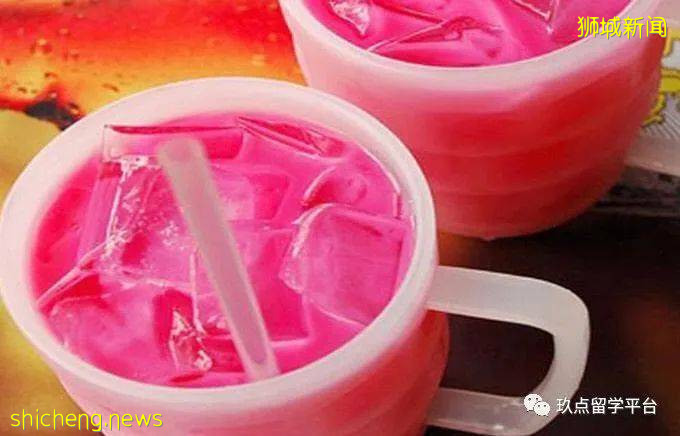這是一種濃郁粉紅色的玫瑰糖漿飲品,在玫瑰糖漿中加入煉乳或淡奶,再放入冰塊,一杯洋溢著芬芳花香的 Bandung 就大功告成了。Bandung 的味道香甜爽口,在濕熱的新加坡是備受歡迎的一種解渴飲品。
