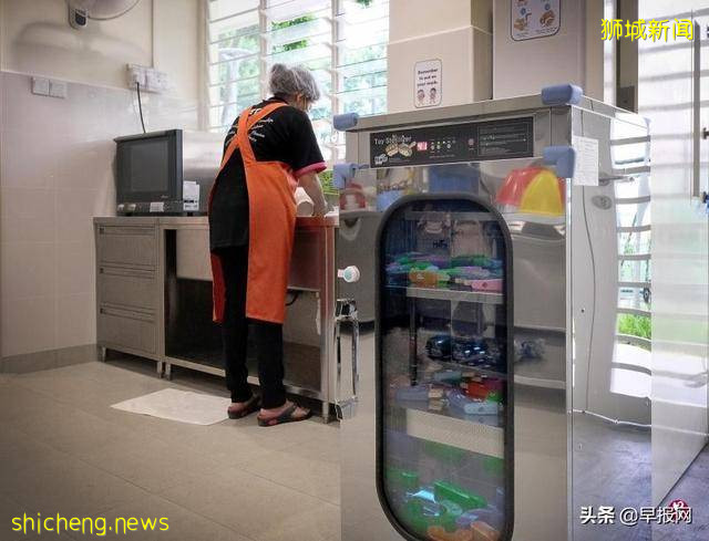 幼樂園中心已購置紫外線消毒箱爲玩具用具消毒,圖爲工作人員正爲下周複課做准備。(林澤銳攝)