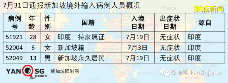 7月31日,新加坡新增確診396例(累計52205例),含境外輸入3起、社區病例3起、客工宿舍病例390起。