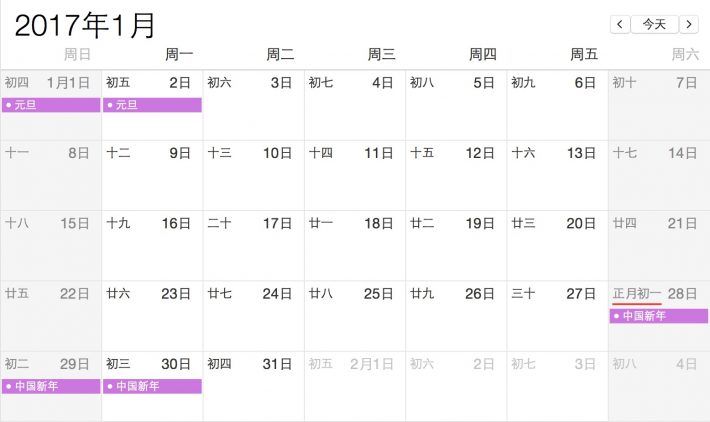 • 1月:元旦(1月1日)和中國農曆新年(1月29日)都落在周日,因此第二天的周一就是公共假期了。