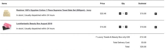 3、Restmor 埃及棉面巾浴巾7件套+LookFantastic 美妝禮盒