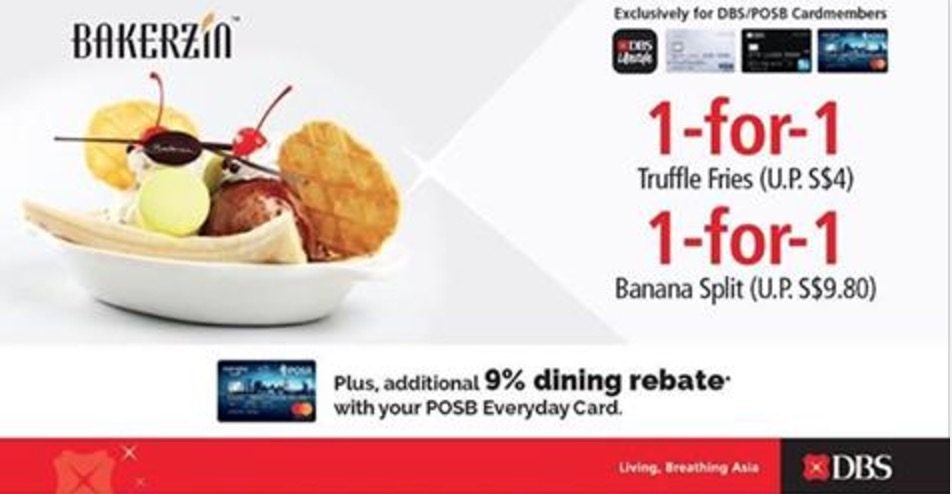 夏天就要吃一大份冰淇淋才過瘾~ Bakerzin超大的松露薯條和香蕉船冰淇淋,現在憑DBS/POSB銀行卡結賬,就能享受1 for 1的特別活動~