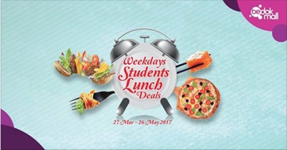 所有Bedok Mall附近讀書黨的超大福音!想要來頓豐盛的午餐?現在只要憑學生證在Bedok Mall一層咨詢台領取折扣券,共16家餐廳和飲品店都能享受超大折扣!