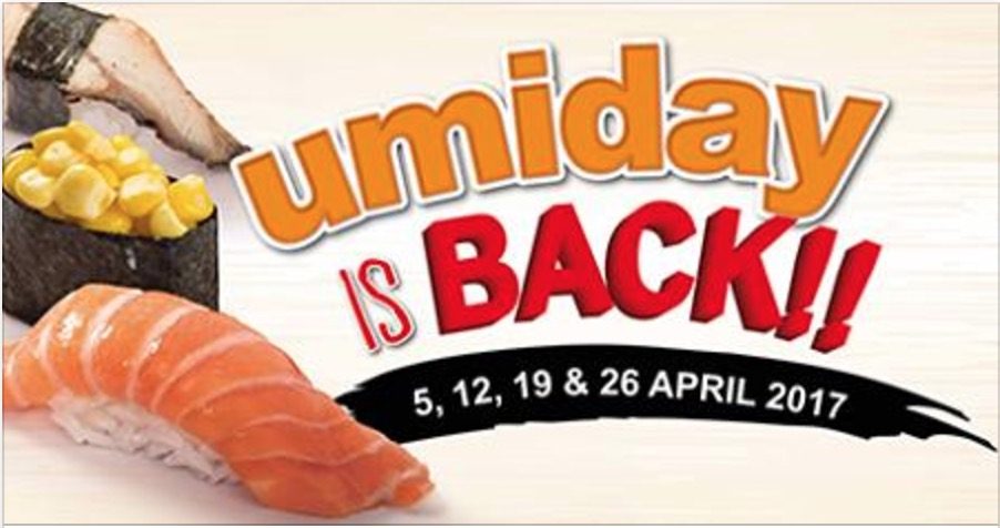 壽司狂熱愛好者和荷包空空者的超級大福利來啦~這個月每周三都是Umiday!坡坡指定umisushi門店都可以享受任意壽司$1~