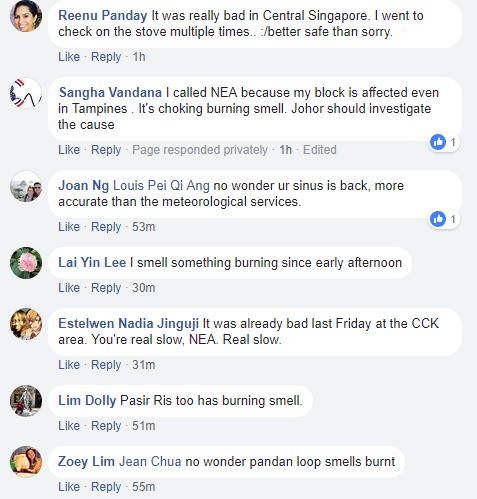 raffles place、pasir ris都有聞到類似燒焦味