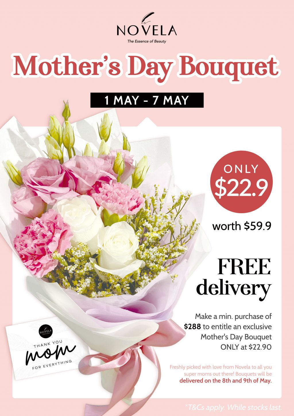 即可以22.9新幣的價格換購母親節限定手捧花哦!