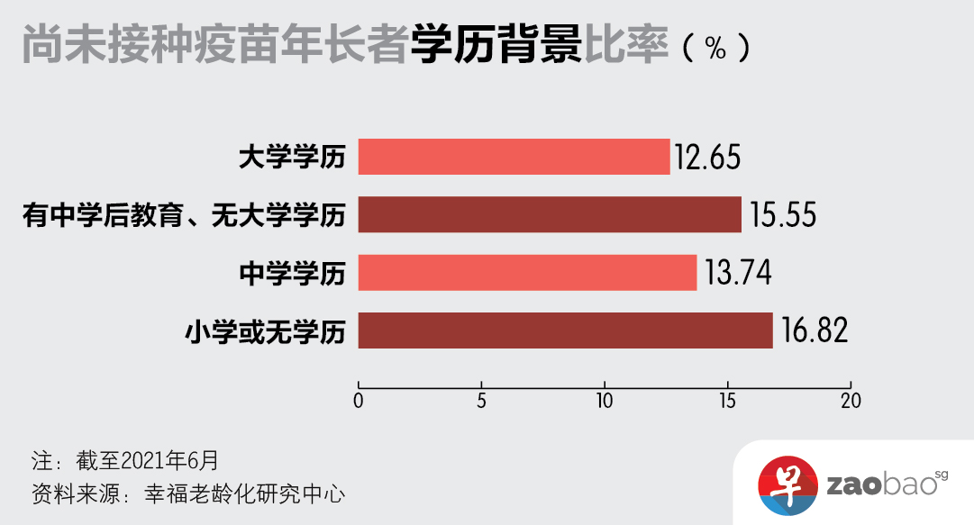 此外,報告也發現不願接種者當中有14.58%是獨居老人,他們也更需要外界的支持和幫助才能獲取接種疫苗的信息。報告指出,在缺乏社會關懷的條件下,接種疫苗的意願也會因爲與社會脫鈎而減弱。