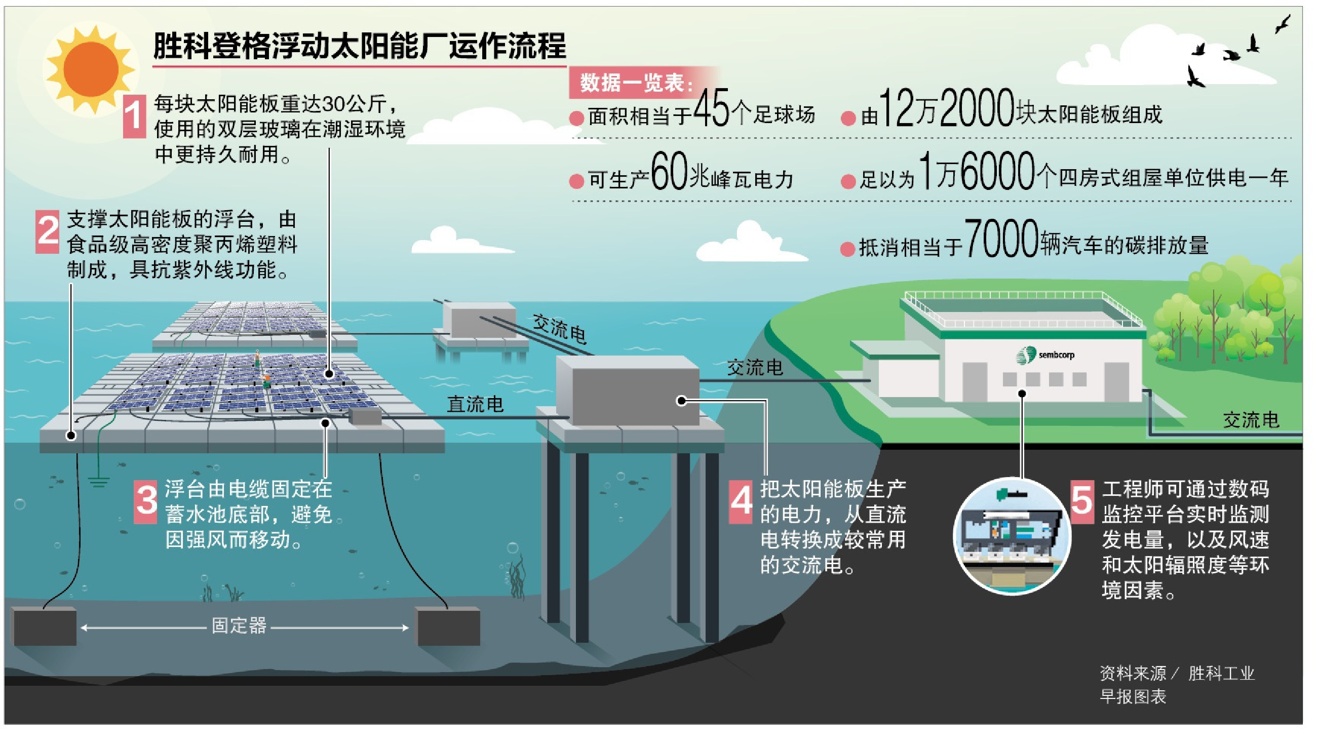 勝科登格浮動太陽能廠于去年8月開始興建,上月正式投入運作。爲克服冠病疫情造成的供應鏈和人力局限,團隊在建造工程中采用創新技術,包括定制夾具以加快太陽能板的組裝速度。