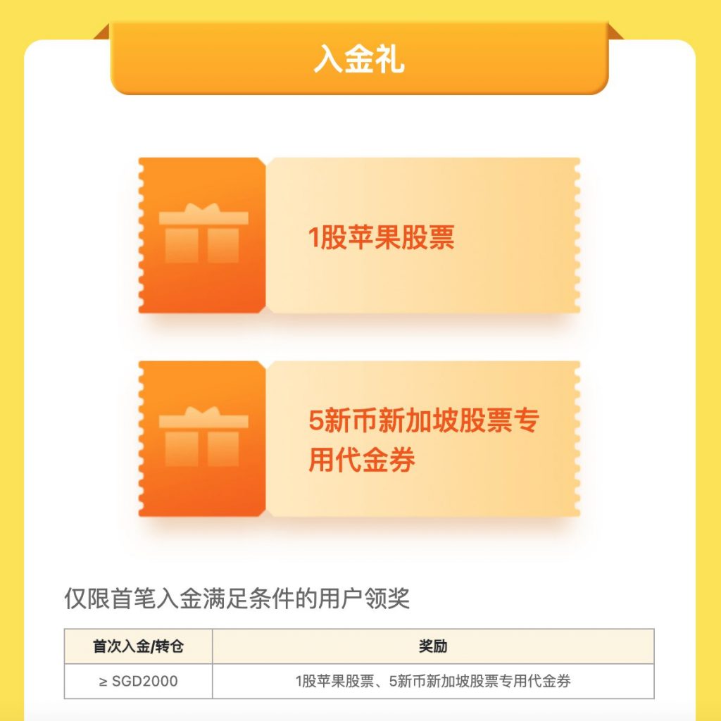 只要入金S$2000,就可以免費領「蘋果」股票!