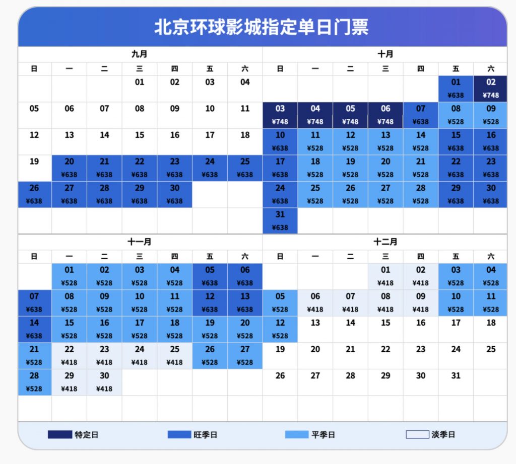 北京環球影城采用四級票價結構: