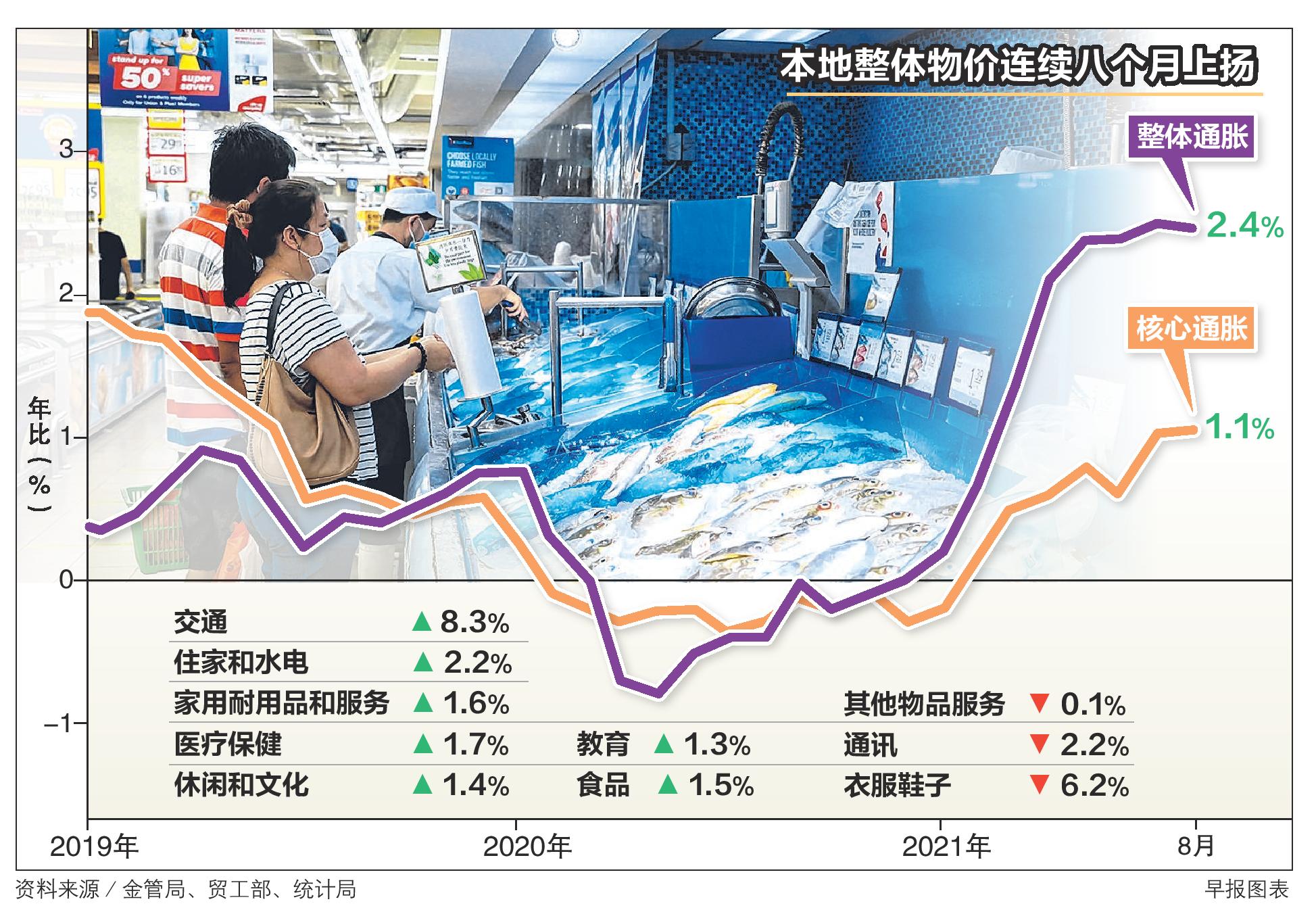 8月份整體通脹略低于7月份的2.5%,這是因爲私人陸路交通通脹從12.6%放緩至10.8%,抵消了核心通脹的漲幅。