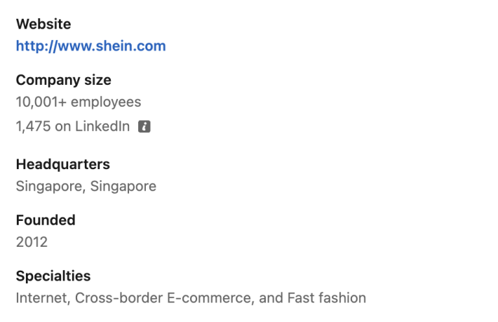 SHEIN已將公司總部地址修改爲新加坡