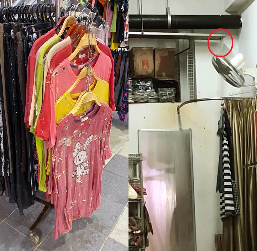 女攤主申訴,在巴刹賣服飾,豈料樓上汙水管爆裂,更衣室慘變“淋浴間”,汙水灑下,衣服上都是殘羹,被逼停業近一個月,損失逾2萬元。