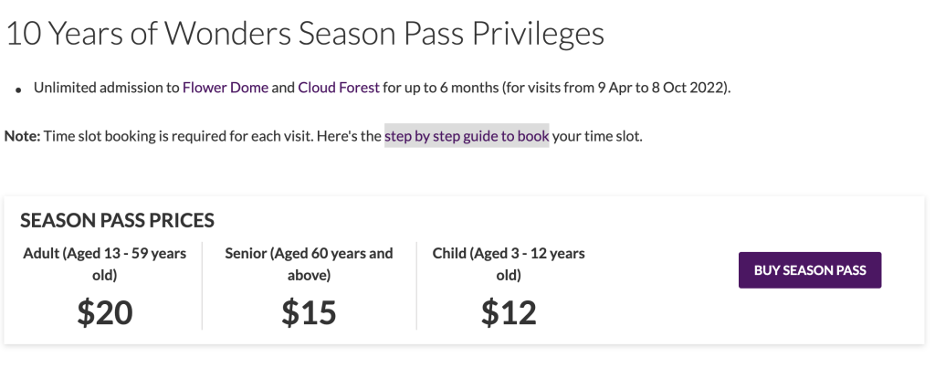 無限次進入Cloud Forest和Flower Dome遊玩!
