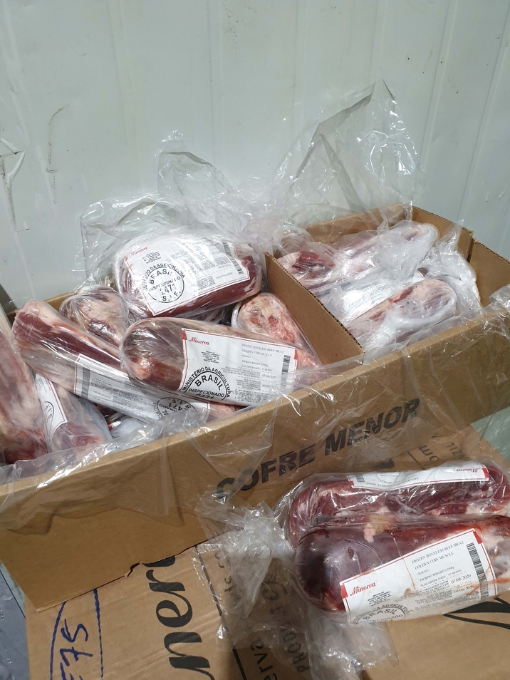 新加坡食品局人員在2020年11月在H&Z Mart私人有限公司內發現非法儲藏的肉類及海鮮。(新加坡食品局提供)